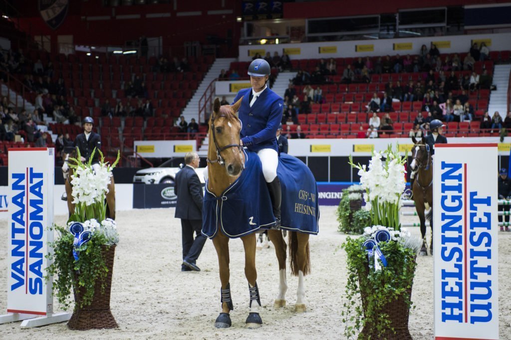 03 International Speed Presented by Länsiväylä, 140 cm,competition against the clock. Started 25, placings 12. 1) Francois Jr Mathy/Falco van de Clehoeve, BEL, 56.78 sec, 2) Paul-Richard Argus/Renessin, EST, 56.83 sec, 3) Emma Broända/Juniper Romeo, FIN, 57.54 sec, 4) Susanna Granroth/Leopoldo, FIN, 62.79 sec, 5) Olivier Robert/Voyelle Borderie, FRA, 63.05 sec, 6) Hans-Dieter Dreher/Tiopepe des Champs, GER, 63.86 sec, 7) Luca Maria Moneta/Connery, ITA, 64.96 sec, 8) Shane Breen/Colmar, IRL, 66.17 sec, 9) Emma Tallberg/Arven, FIN, 67.53 sec, 10) Daniel Deusser/Jasmien vd Bisschop,GER, 67.92 sec, 11) Christian Ahlmann/Atomic Z, GER, 69.47 sec, 12) Robert Smith/Newton Pacific, GBR,72.47 sec,… 16) Anna-Julia Kontio/Antoinette Manciaise, FIN, 73.51 sec,… 23) Sanna Backlund/Wilhelmina, FIN, 85.29 sec